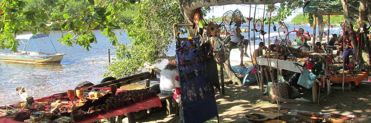 Separada de Porto Seguro pelas águas do rio Buranhém, Arraial foi, por muitos anos, acessível apenas através de travessias de balsa. O comércio só funciona no final da tarde...