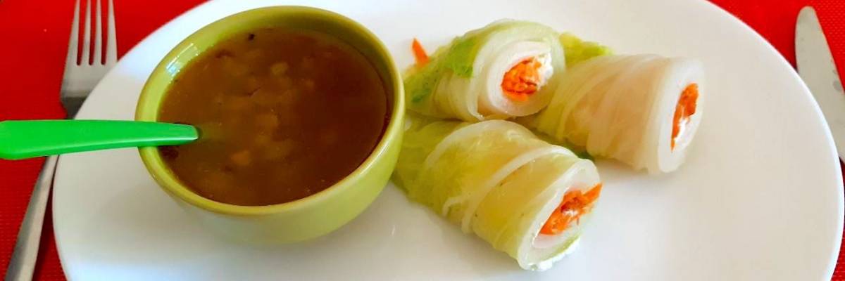 Enroladinho vegetariano da Lua com molho de maracujá